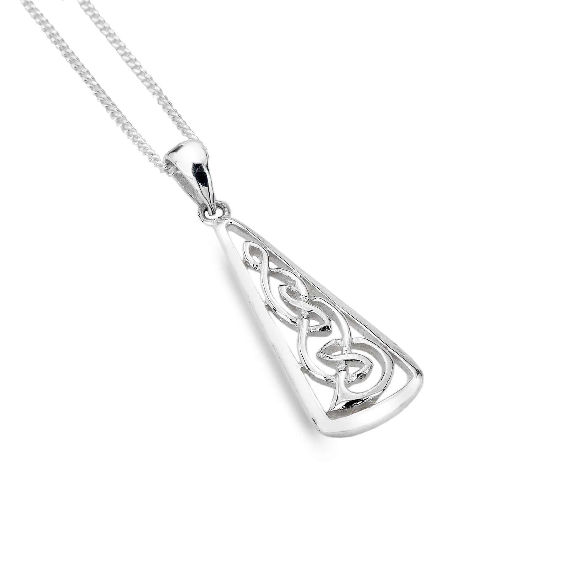 Sterling Silver Pendant Necklace - Celtic Knotwork Triangular