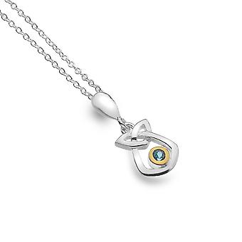 Sterling Silver Pendant Necklace - Celtic Trinity Knot + Bl Topaz + Gold Plated Simple