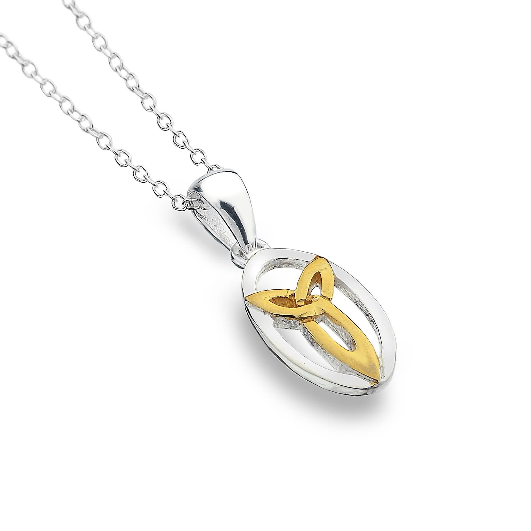 Sterling Silver Pendant Necklace - Celtic Trinity Knot + Gold Plated Oval