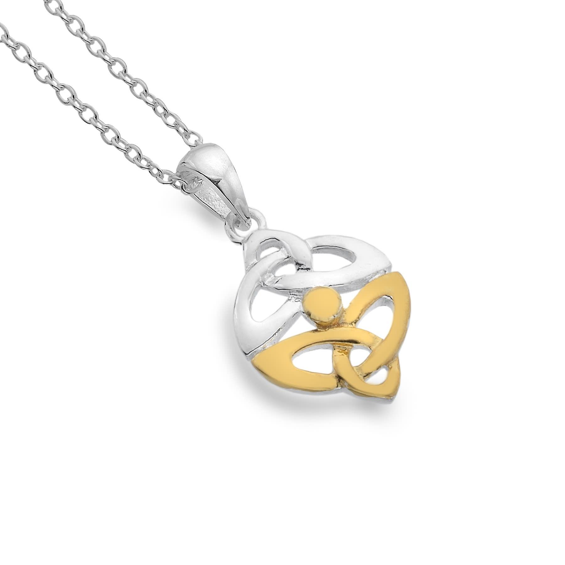 Sterling Silver Pendant Necklace - Celtic Trinity Knots + Gold Plated