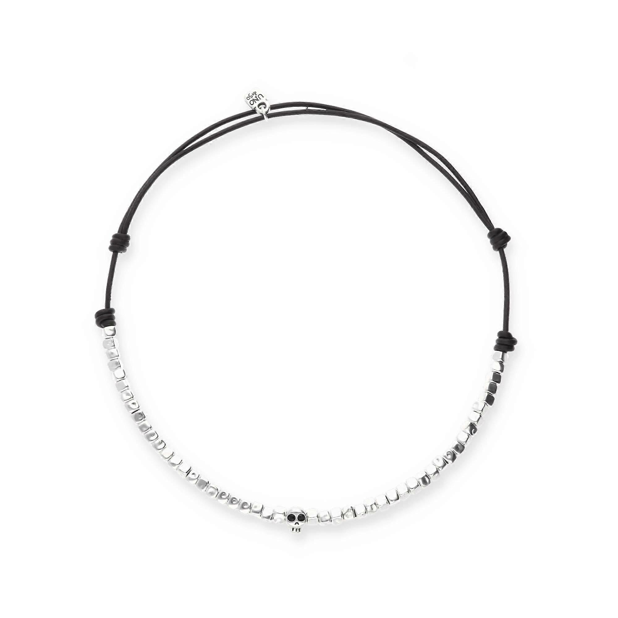 Sterling Silver Plated Skull Detail Beaded Leather Necklace COL2026NGRMTL