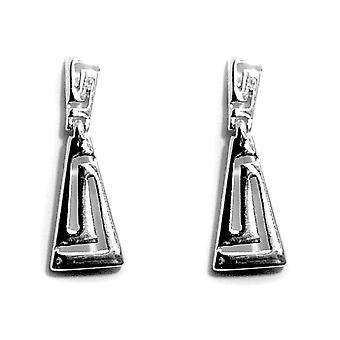 Sterling Silver Rhodium Plated Ancient Greek Key Drop Earrings