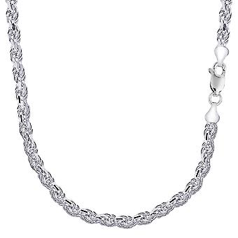 Sterling Silver Rhodium Plated Diamond Cut Rope Chain Necklace, 5.7mm