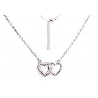 Sterling Silver Rhodium Plated Double Heart Necklace ERLN003