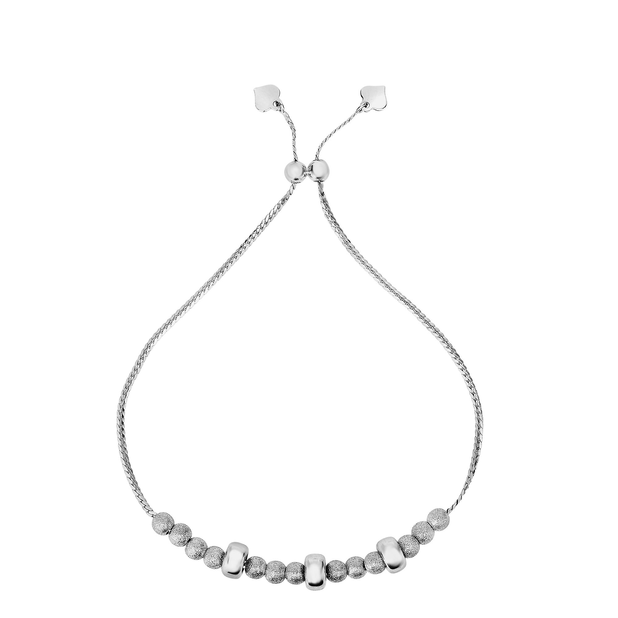 Sterling Silver Sparkly Finish Beads Element Adjustable Bolo Friendship Bracelet , 9.25"