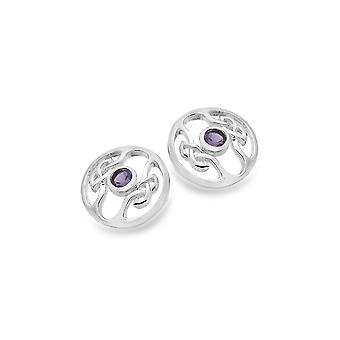 Sterling Silver Stud Earrings - Celtic Knots + Amythest