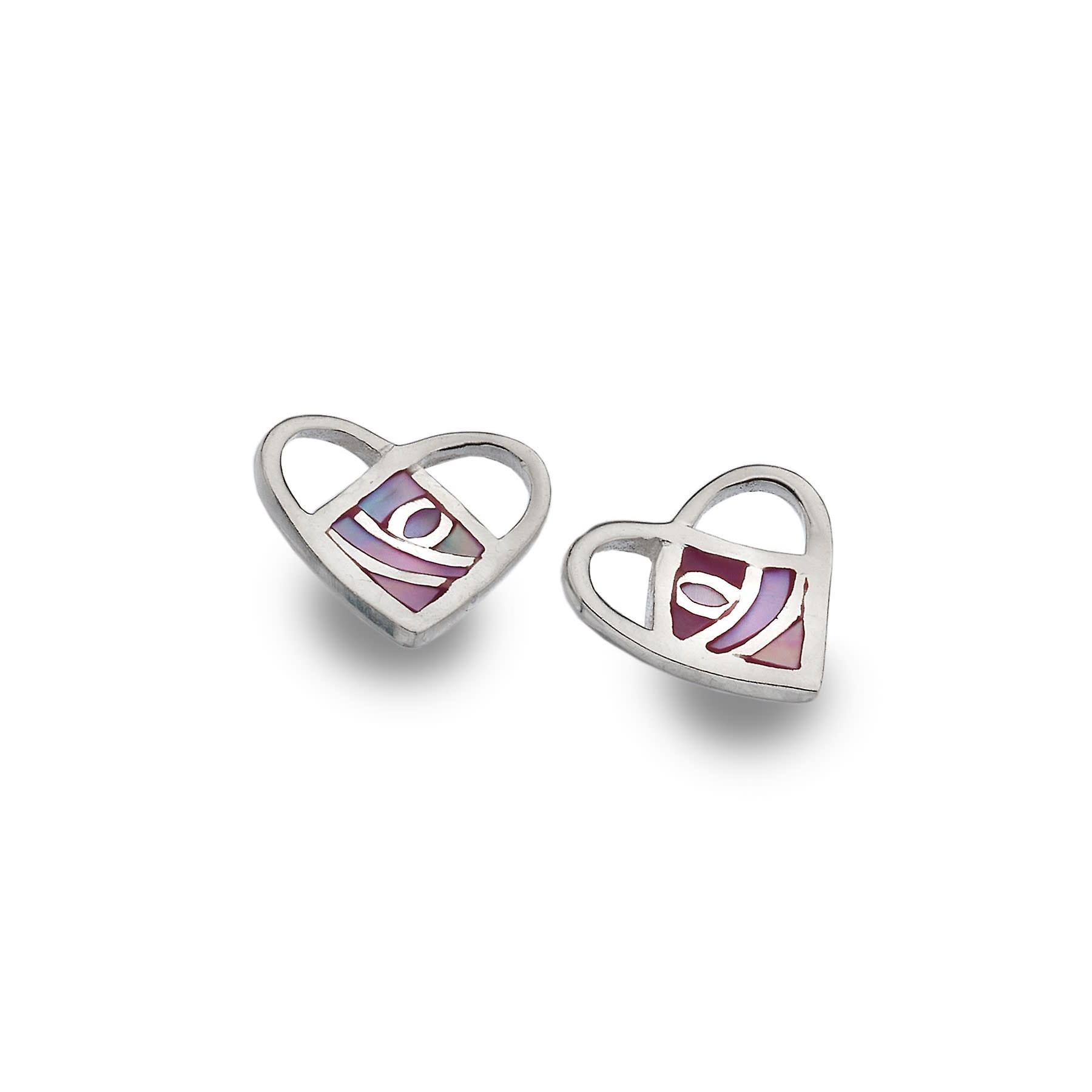 Sterling Silver Stud Earrings - Charles Rennie Mackintosh Rose Heart + Pink Mother of Pearl