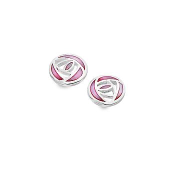 Sterling Silver Stud Earrings - Charles Rennie Mackintosh Rose + Pink Mother of Pearl