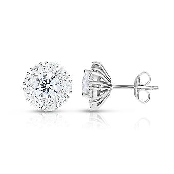 Sterling Silver Sunflower Cubic Zirconia Stud Earrings