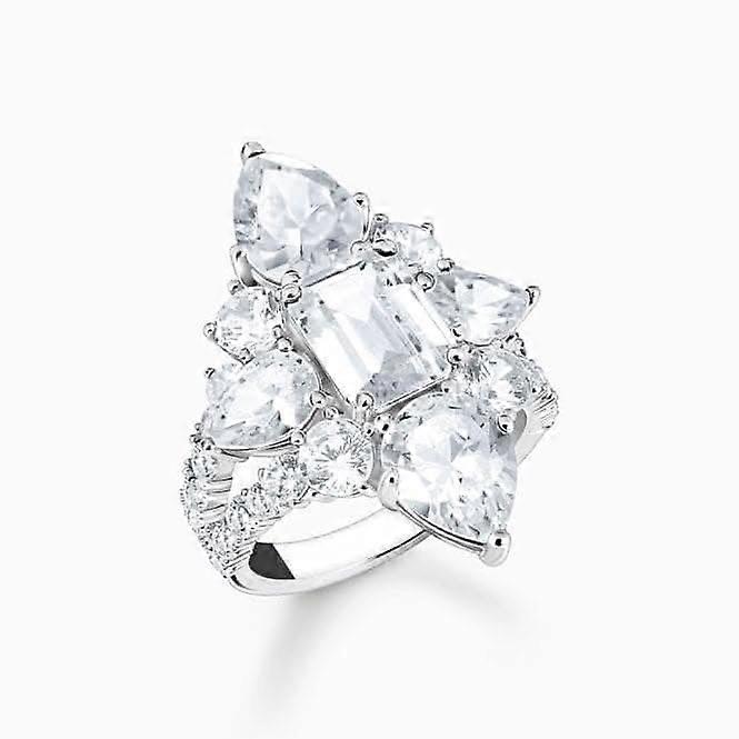Sterling Silver White Stones Cocktail Ring TR2441-051-14