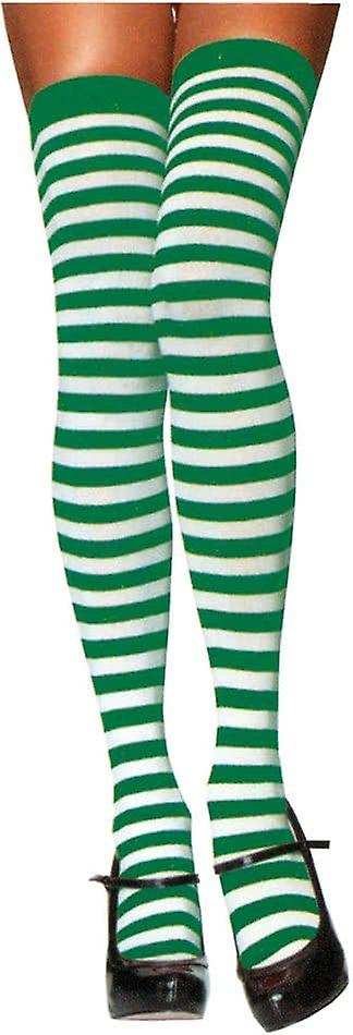 Stockings Thi Hi Striped Wt/Gr - Costume Accessory