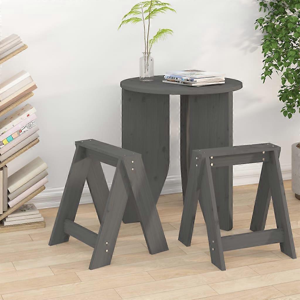 Hocker 2 Stk. Grau 40x40x45 cm Massivholz Kiefer