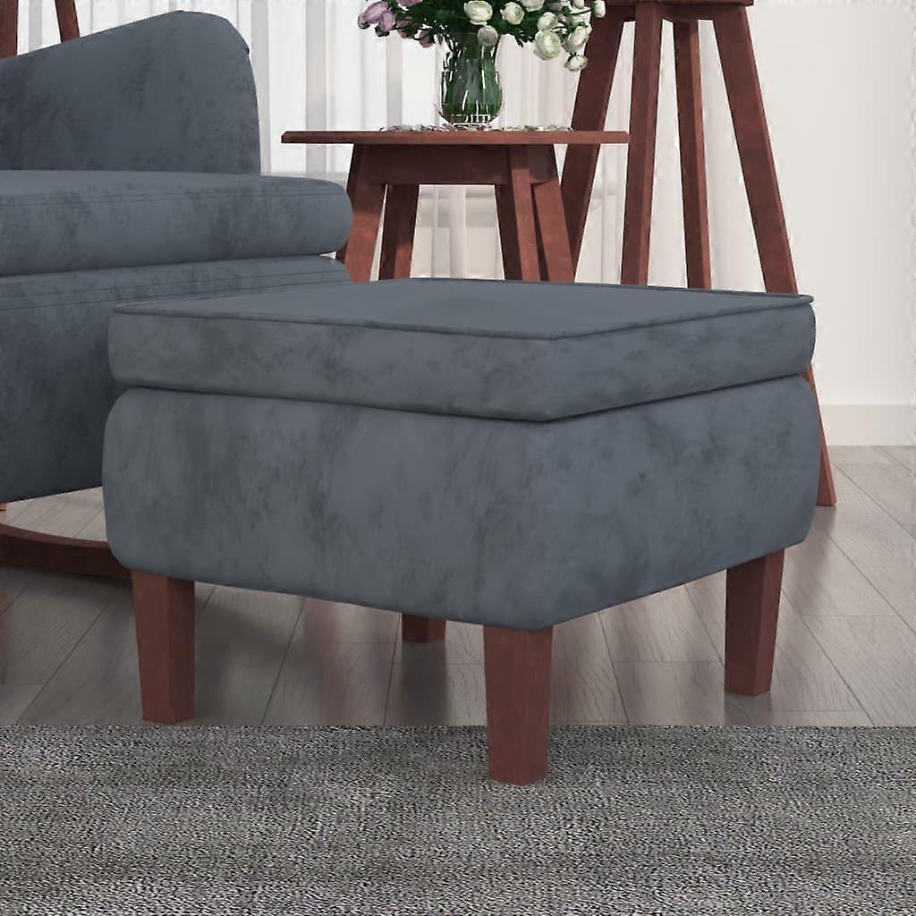 Hocker mit Holzbeinen Dunkelgrau Samt