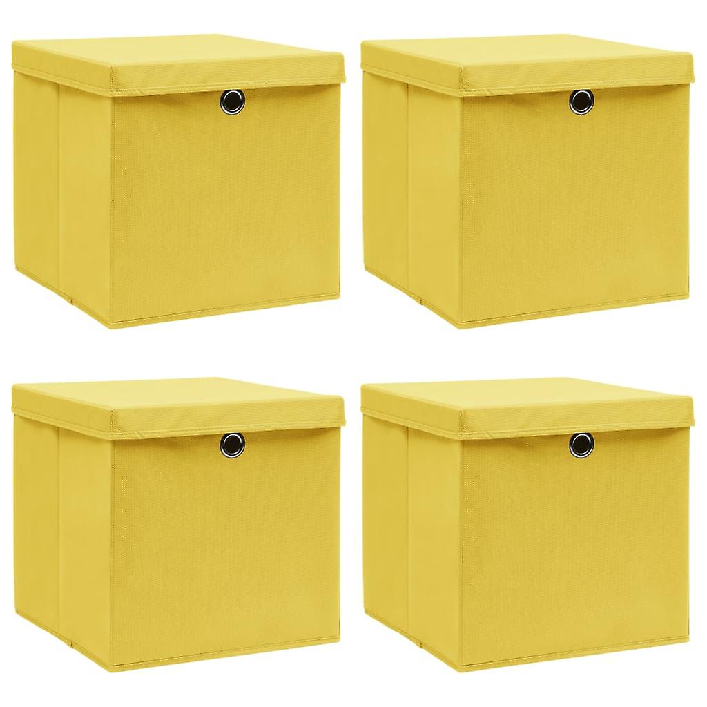 Aufbewahrungsboxen mit Deckeln 4 Stk. Gelb 32x32x32 cm Stoff
