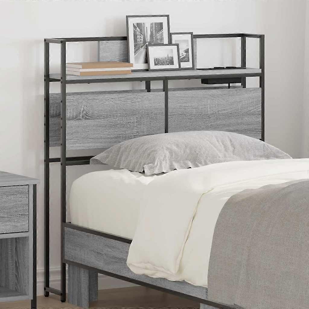 Stauraum-Kopfteil mit Regal Grau Sonoma 90 cm Holzwerkstoff