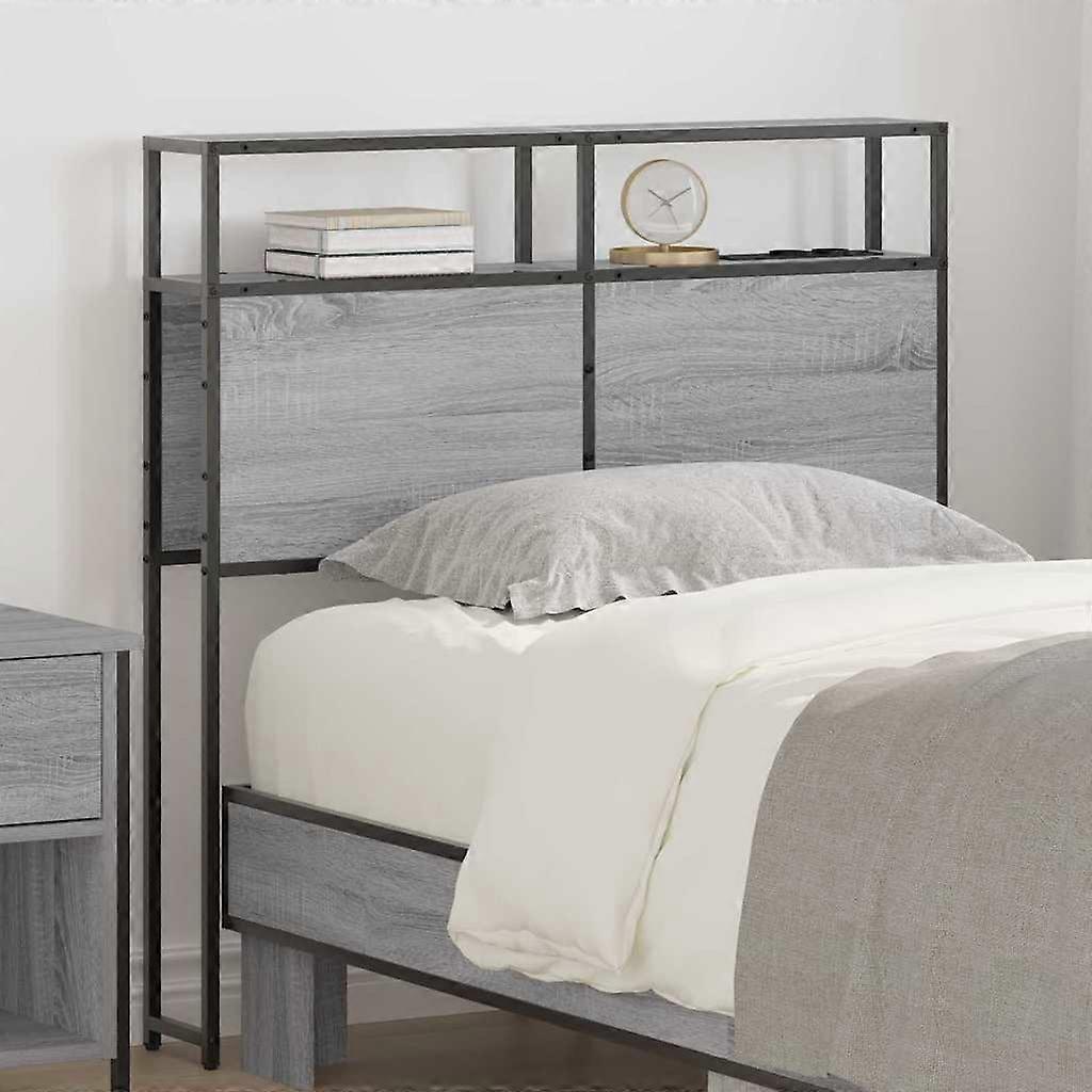 Stauraum-Kopfteil mit Regal Grau Sonoma 100 cm Holzwerkstoff