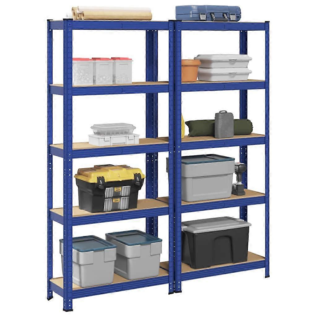 Lagerregale mit 5 Böden 2 Stk. Blau Stahl & Holzwerkstoff