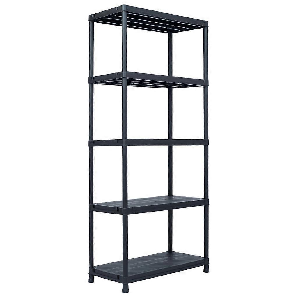 Farbe: Schwarz Material: KunststoffAbmessung: 90 x 60 x 180 cm (L x B x H)Mit 5 AblagenMaximale Belastbarkeit pro Etage: 100 kgMaximale gesamte Belastbarkeit: 500 kgMontagematerialien enthaltenTÜV-GS-zertifiziertWARNUNG: Um ein Umkippen zu vermeiden, muss es mit der mitgelieferten Halterung an der Wand gesichert werden.