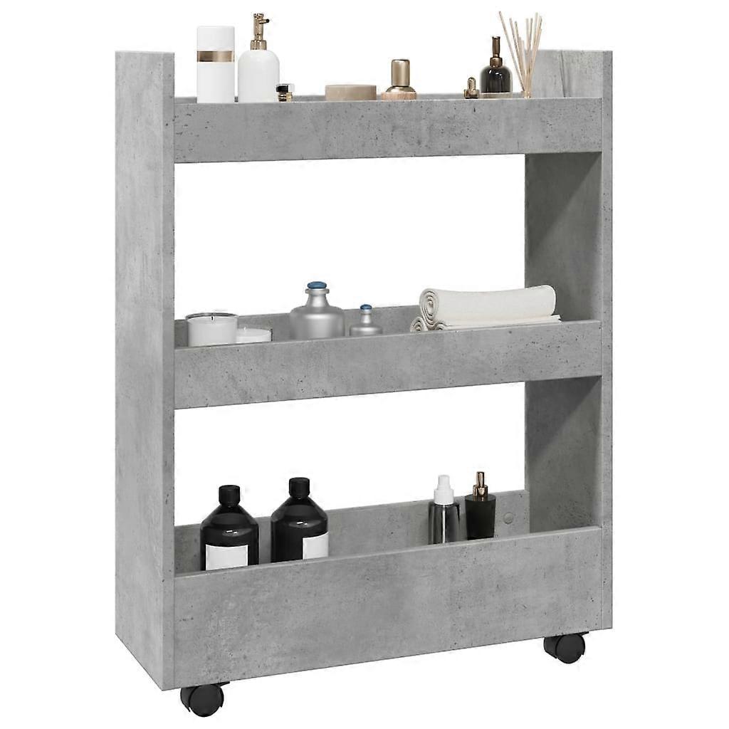 Aufbewahrungswagen Schmal 3 Etagen Betongrau Holzwerkstoff