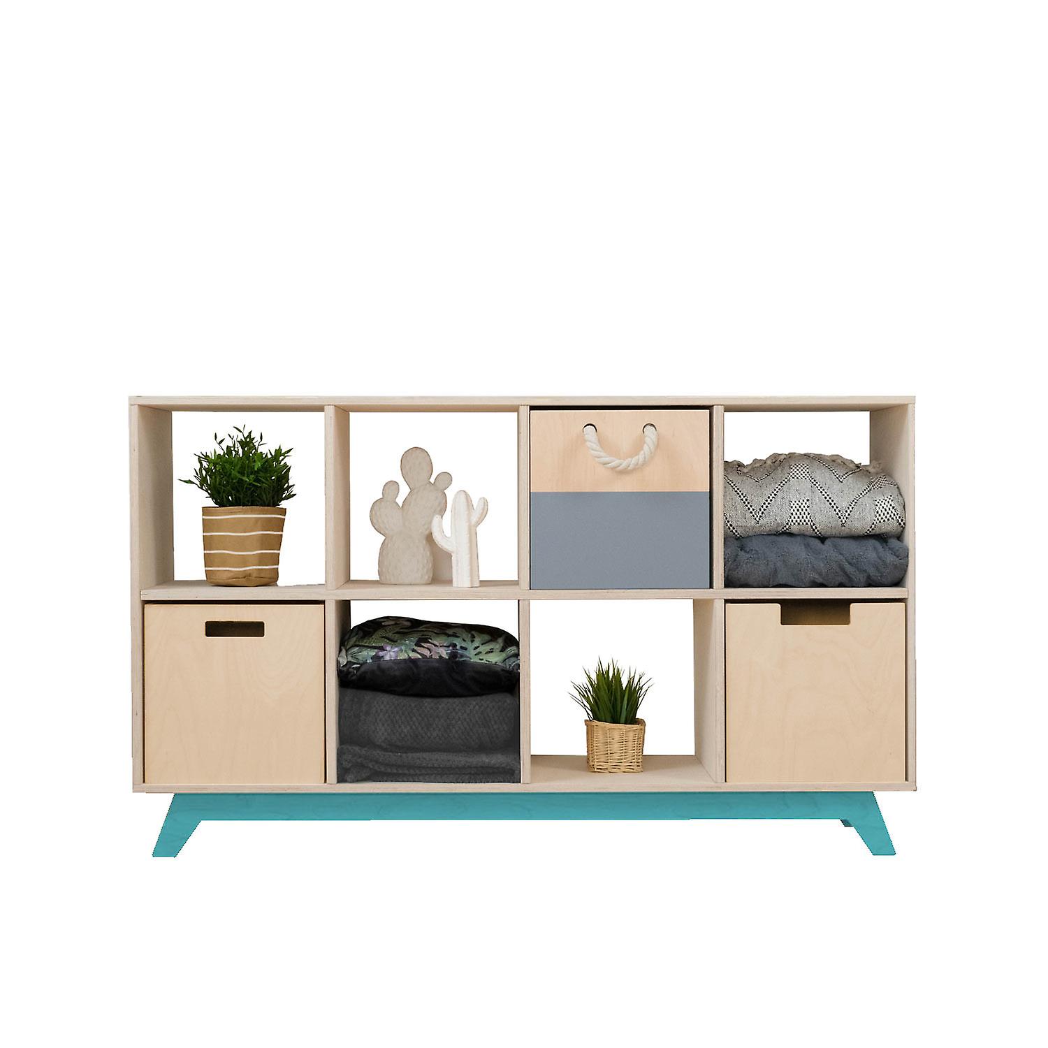 Create the furniture for your desires with this Nabosky shelf, to personalize with the storage boxes of your choice Suitable for Boks, House, DICE storage boxes and also boxes from other manufacturers. Available in 5 colors (white, pink, turquoise, dark gray, natural wood). Wooden furniture with 8 shelves. 100% natural, anti-allergen and ecological colors. Dimensions: 145 x 86 x 39 cm (width x height x depth). Dimensions of the storage space: 34x 34x 39 cm (width x height x depth). Manufacturing and delivery times can occur. Material: 1.8 cm birch wood plywood panel. Load capacity: 15 kg / shelf. Guaranteed 5 years. Storage boxes are not part of the product. Model of Visuals: Boks.