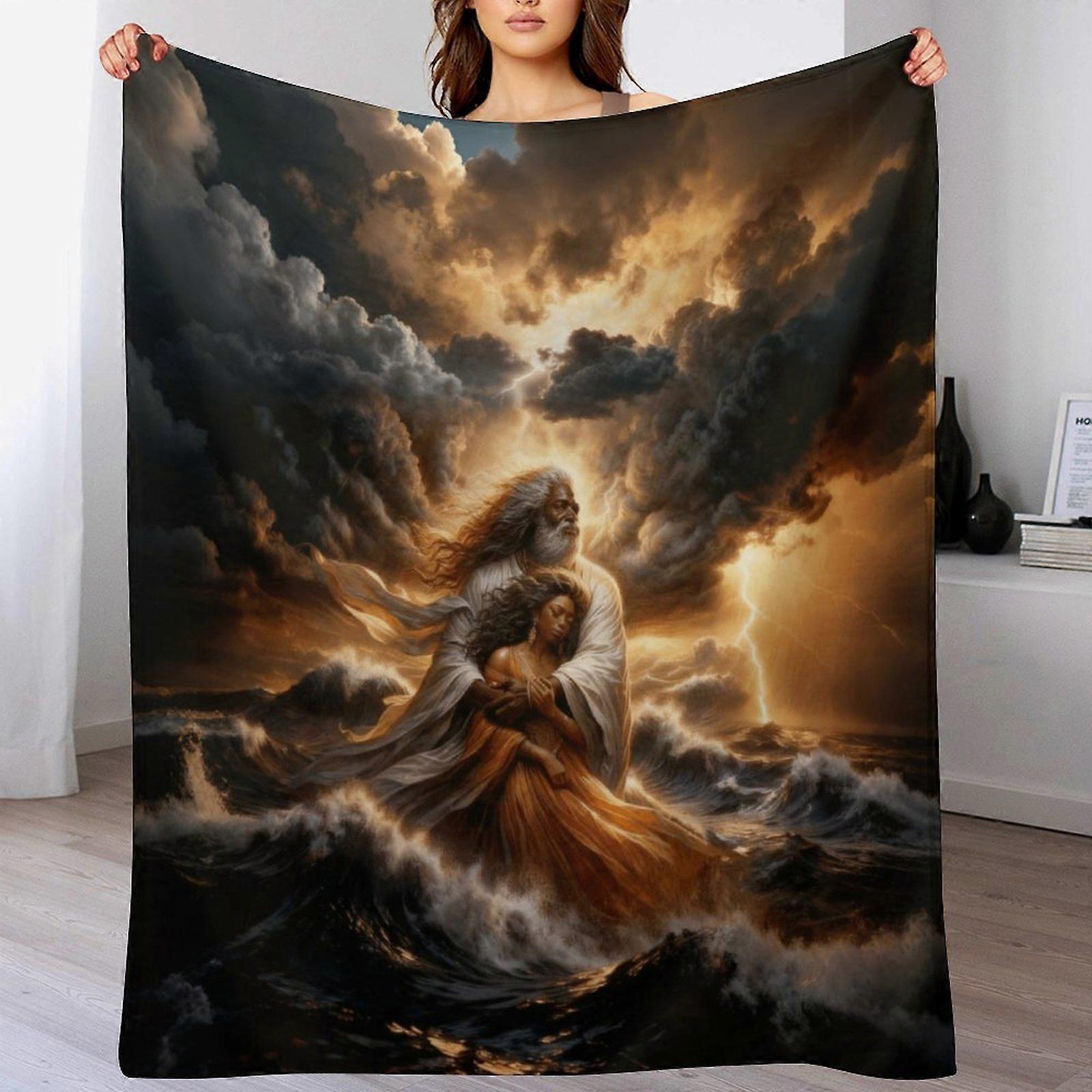 Stormy Sea Protective Figure Print Flannel Blanket - Soft Warm Throw for Sofa | Spiritual Decor for Faithful Adults