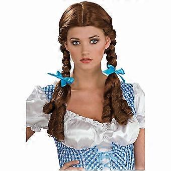 Storybook Farm Girl Classic Brown Braid Womens Costume Wig With Ribbon