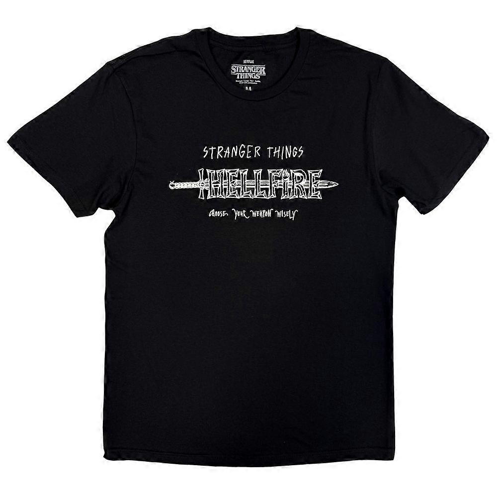 An official licensed Netflix T-Shirt featuring the Stranger Things - Hellfire design motif. This high quality unisex tee is available in black colorway. Comes in a wide range of sizes from Small through XX-Large, subject to availability.