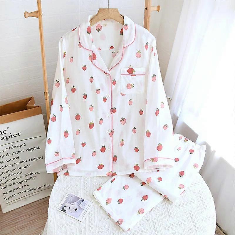 Strawberry Print Cotton Pajamas Set Women's Sleepwear 2-piece Spring Loungewear