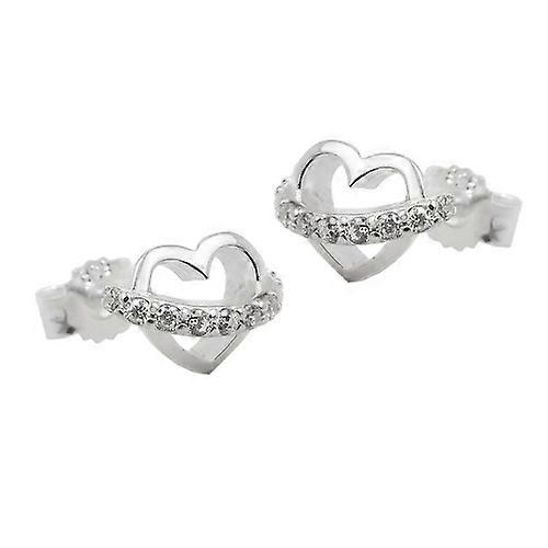 Ohrstecker Ohrring 6x9mm Herz mit Zirkonia-Band Silber 925