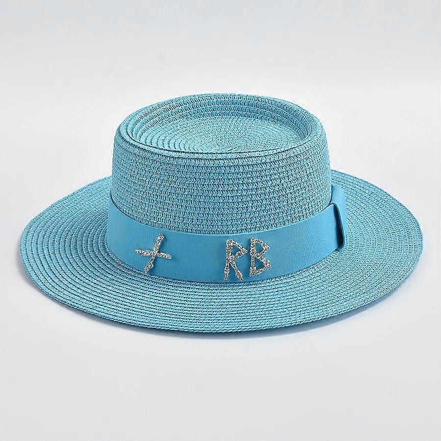 Stylish Women's Metal Letter Straw Hat - Elegant Summer Boater Sun Hat. Elevate Your Beach Style with This Chic Women's Sun Hat, Perfect for Spring and Summer Outings. Crafted from a Blend of Paper and Polyester, This Casual Hat Provides Excellent Sun Protection While Maintaining a Lightweight Feel. Adorned with a Stylish Letter Pattern, It's a Fashionable Accessory for Any Sunny Day. Features: - Applicable Scene: Beach - Applicable Season: Spring and Summer - Department: Adult - Feature: Sun Protection - Gender: Women - Material: Paper and Polyester - Style: Casual - Pattern Type: Letter Enhance Your Sun-soaked Adventures with Reliable Protection and Timeless Style..