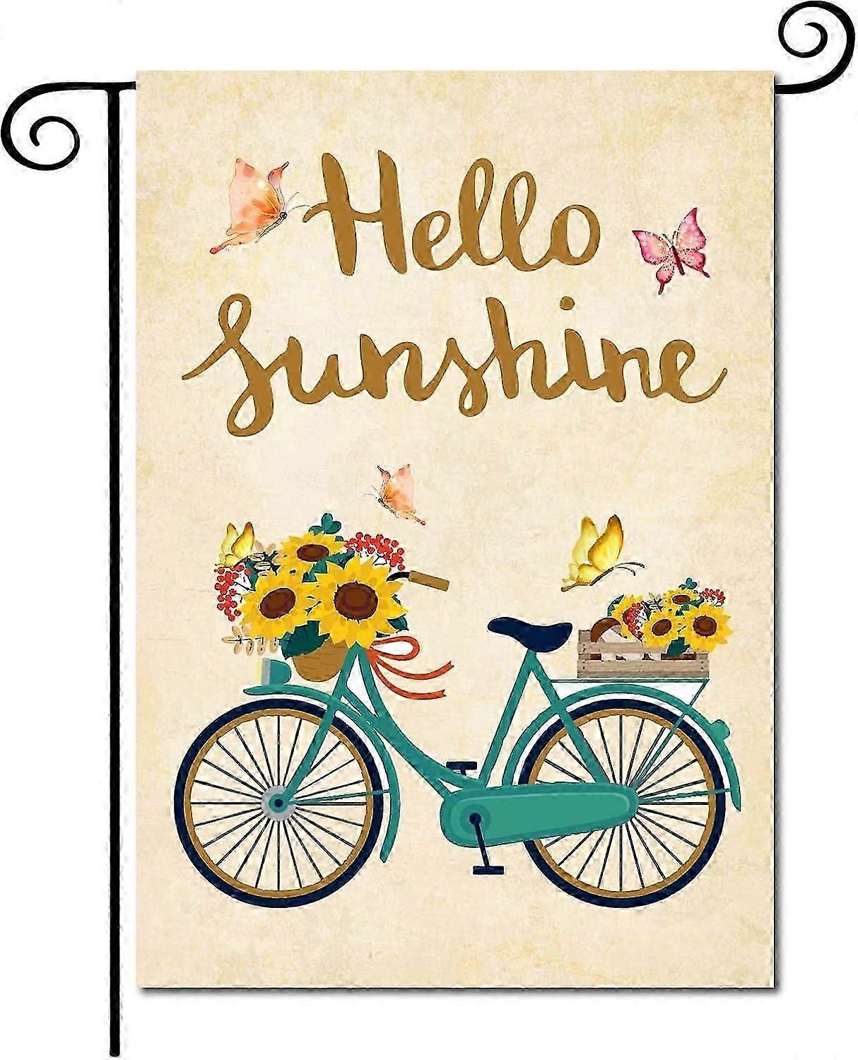 Summer Garden Flag Hello Sunshine Sunflower Bicycle Yard Flag Spring Holiday Double Sided Vertical Front Door Decoration Rustic for Garden Farmhouse H