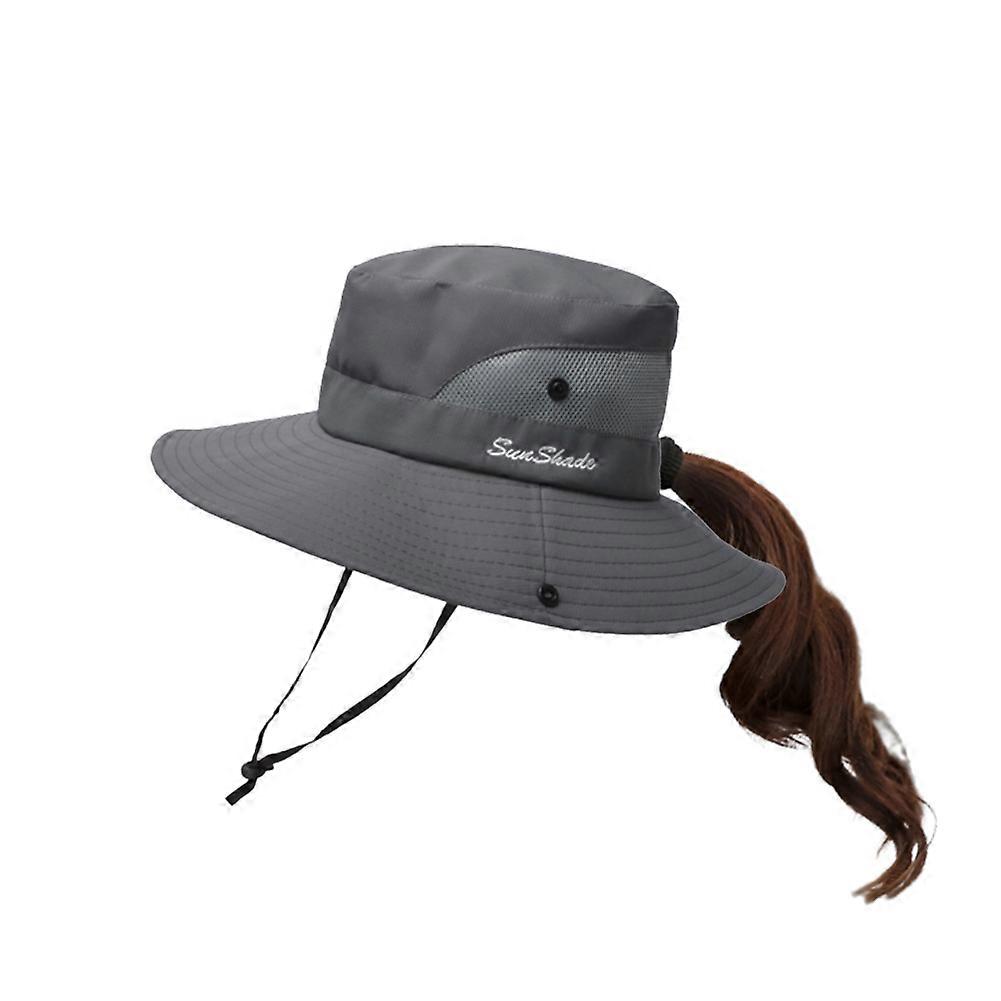 Summer Ponytail Hat for Women UV UPF Wide Brim Hat Sun Fishing Boonie Hat Fishing Accessories Fishing Equipment