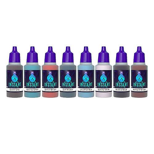 Scale75 - Instant Colors - Summon Potions - Shadow Colors A set of 8 matte finish, acrylic paints designed specially for gamers to paint Cold Metals, Outline, General Shadows, Urban Terrain, Stones, Floor & Pavement, Fire Weapons, Dark Creatures, etc. Contents: - Shadow Black - Golem Grey - Basilisk Green - Demon Brown - Dark Kraken - Leviathan Blue - Spectral Wolf - Werewolf Brown Easy & effective coverage of paint 17ml bottles Set of 8 Can be used with brush & airbrush High quality and durability Non-toxic and non-flammable