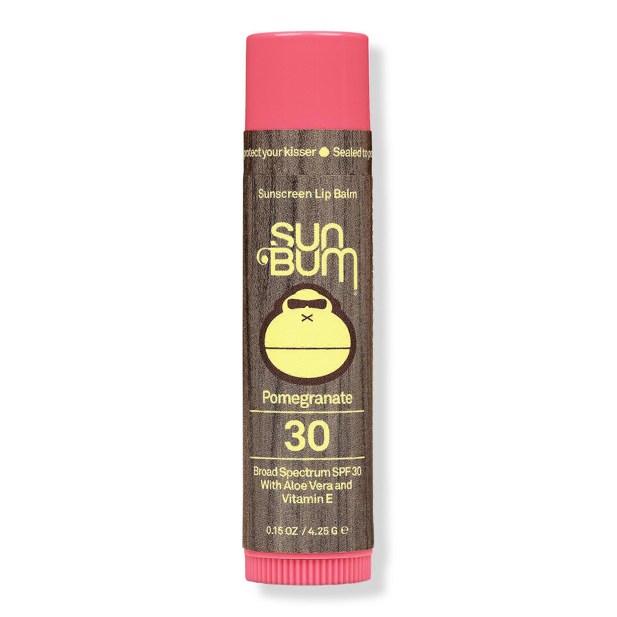 Sun Bum smooth SPF 30 sunscreen lip balm with added Aloe and Vitamin E helps protect and moisturize your lips all day long. This pomegranate-flavored lip balm is enriched with nourishing ingredients to keep your lips safe and hydrated.
