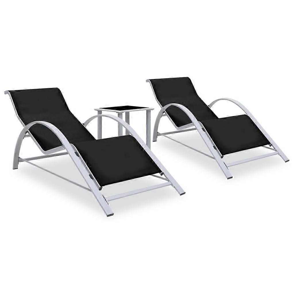 Sonnenliegen 2 Stk. mit Tisch Aluminium Schwarz