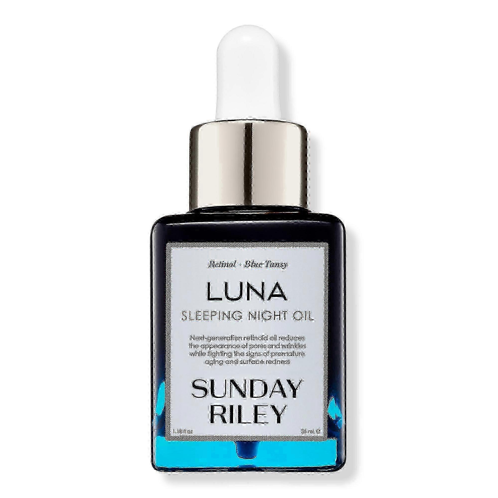 Sunday Riley Luna is a next-generation retinol oil that boosts the look of skin plumpness, while visibly improving the appearance of wrinkles, redness, and pores. Benefits 1 face oil in the US based on FY 2021 dollars sold in NPD.Sunday Riley is the 1 face oil brand in the US based on FY 2021 dollars sold in NPD.Works throughout the night to give visibly youthful, luminous, even-toned skin by morningReduces the appearance of pores and wrinklesVisibly improves the signs of premature aging: fine lines, uneven texture, age spots, dryness, and dullnessSoothes visible redness and neutralizes signs of sensitivity for a calm, even-toned complexionVegetarianCruelty-freeFormulated without artificial fragrances, sulfates, parabens, gluten, soy, and phthalates Key Ingredients Trans-retinol belongs to a class of chemical compounds termed retinoids, which help fight the appearance of wrinkles and fine lines, promote skin elasticity, and stimulate exfoliation for clearer, smoother skinBlue Tansy and German Chamomile essential oils, both rich in soothing Blue Azulene, visibly reduce the appearance of redness for a calm, even-toned complexionAvocado Seed Oil is rich in anti-aging vitamins A, B, C, D, and E and plumps the skin to smooth the appearance of fine lines and wrinklesChia Seed Oil is the richest botanical source of Omega 3 and a powerful source of ALA, which helps minimize the appearance of lines Clinical Results Proven via in-vivo testing (silicone replicas) and expert visual grading, Luna Sleeping Night Oil is clinically proven to improve skin radiance, fine lines, and smoothness in 4 weeksAfter an independent consumer testing panel used Luna Sleeping Night Oil for 4 weeks:100% felt the product absorbed well into the skin96% of women felt their skin looked brighter, more radiant, healthier, and revitalized92% of women felt their skin tone looked more even, calmer, smoother88% felt their pores look smaller85% felt their fine lines and wrinkles around the forehead were visibly improved Inactive Ingredients: PERSEA GRATISSIMA (EXTRA VIRGIN, COLD PRESSED AVOCADO) OIL,VITIS VINIFERA (ORGANIC, COLD PRESSED CONCORD GRAPE) SEED OIL, RUBUS FRUTICOSUS (COLD PRESSED BLACKBERRY) SEED OIL, SALVIA HISPANICA (COLD PRESSED CHIA) OIL, DIMETHYL ISOSORBIDE (AND) HYDROXYPINACOLONE RETINOATE, CHAMOMILLA RECUTITA (MATRICARIA) FLOWER OIL, TANECETUM ANNUUM (BLUE TANSY) OIL, ANTHEMIS NOBILIS (ENGLISH CHAMOMILE) OIL, ERIOCEPHALUS PUNCTULATUS (CAPE CHAMOMILE) OIL, CITRUS AURANTIUM AMARA (NEROLI) OIL, CITRUS AURANTIUM DULCIS (BLOOD ORANGE) OIL, CANANGA ODORATA FLOWER (YLANG YLANG) OIL, VETIVERA ZIZANOIDES (VETIVER) OIL, HELIANTHUS ANNUUS (SUNFLOWER) SEED OIL (AND) ROSMARINUS OFFICINALIS (ROSEMARY) LEAF EXTRACT, CI 61565 (GREEN 6), CI 60725 (VIOLET 2) Suggested Use: Apply at night, to clean, dry face. Luna goes from blue to clear when massaged into the skin. Not for use during pregnancy. Precautions: We do not recommend using retinoids while pregnant. Please consult your doctor before use if you are pregnant or breastfeeding. We always recommend using sunscreen during the day, if using retinoids in the evening. UPC: 000002550150 Weight: 0.63 lbs RKU: ULT2550150