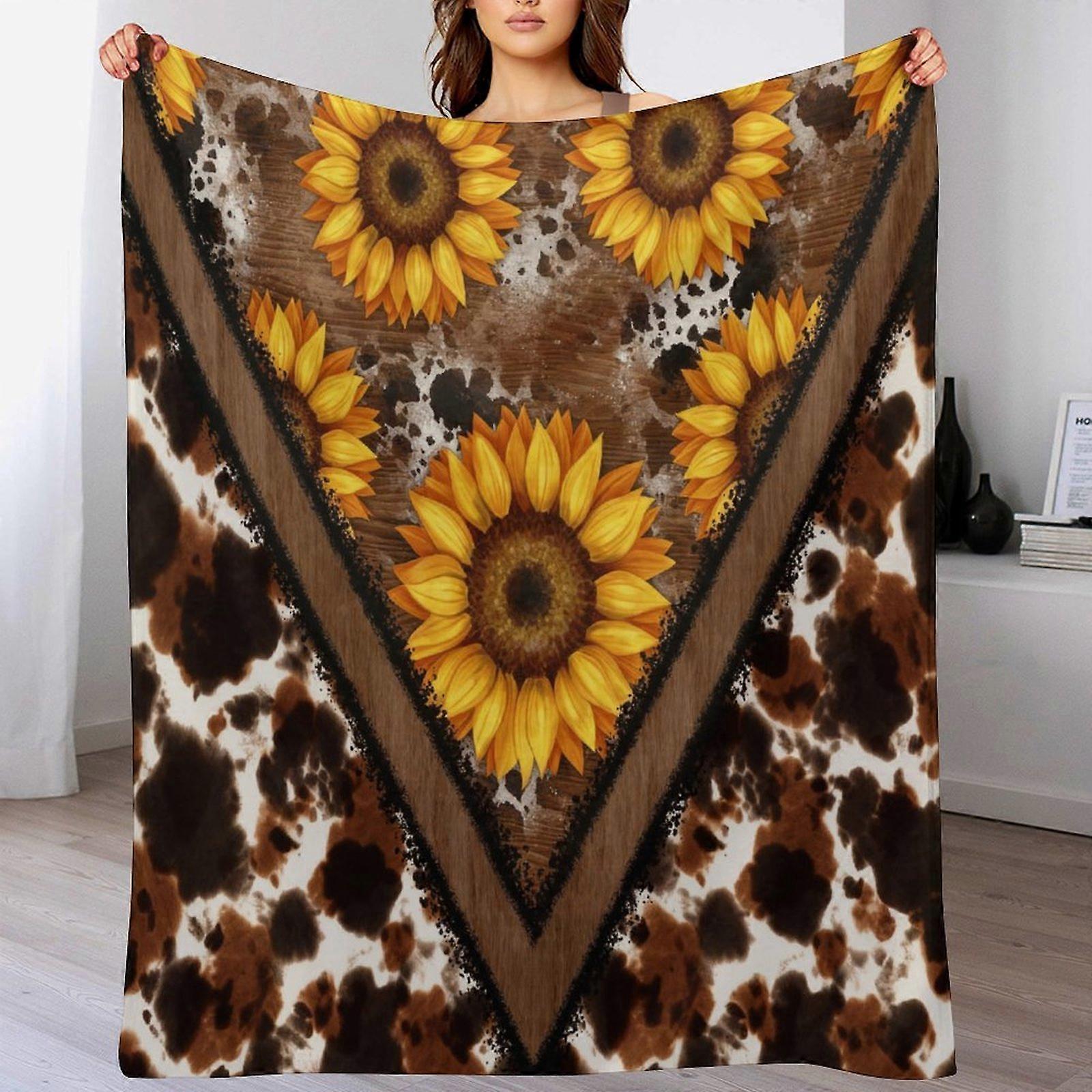 Sunflower & Cow Print Flannel Blanket - Cozy Warm Throw for Bedroom | Rustic Farmhouse Decor for Families