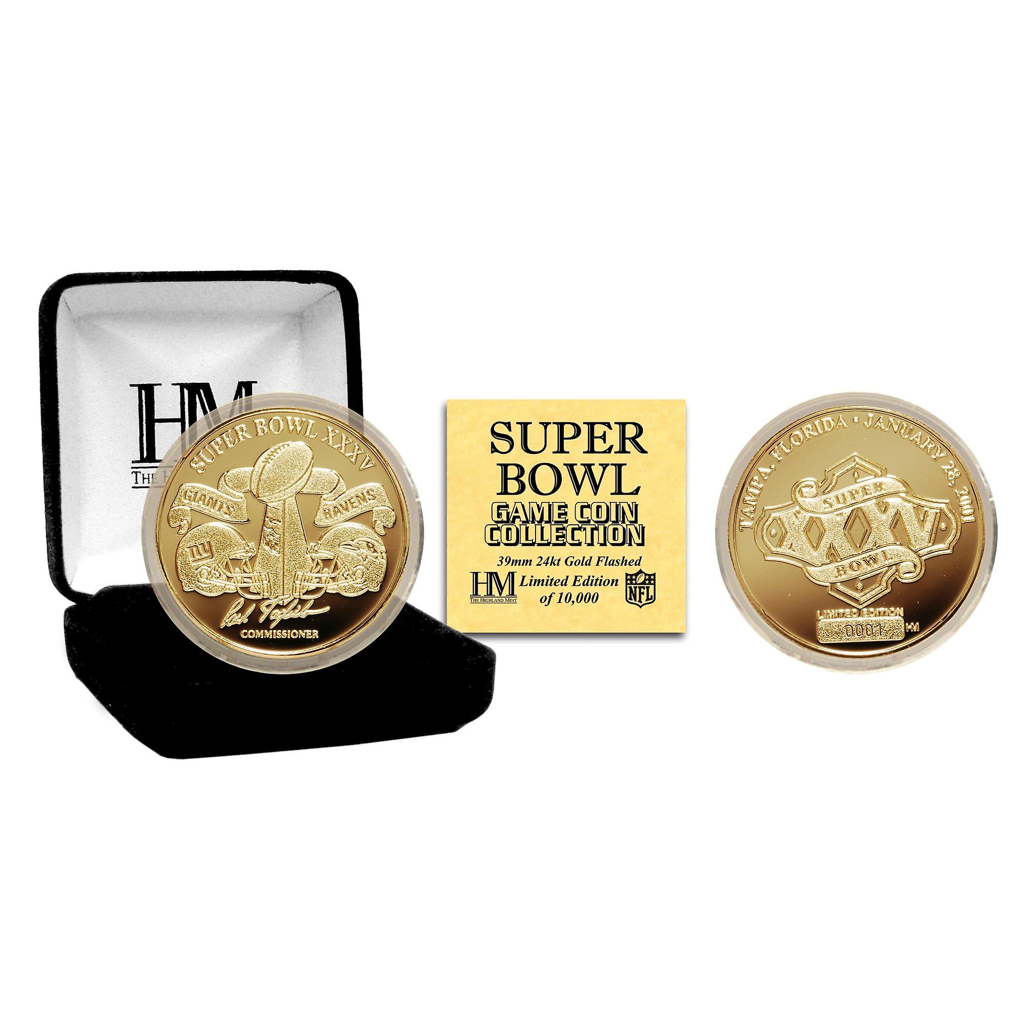 Super Bowl XXXV Gold Flip Coin NFL Münze 39mm, vergoldet