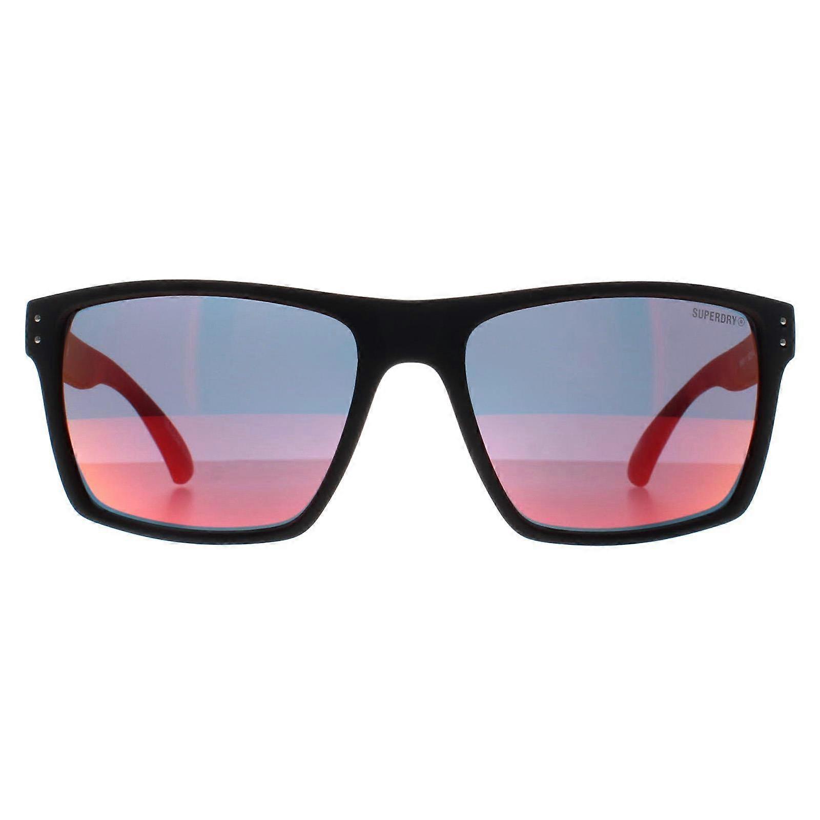 Superdry Sunglasses Kobe 193 Matte Black Volcanic Mountain Orange Red Mirror