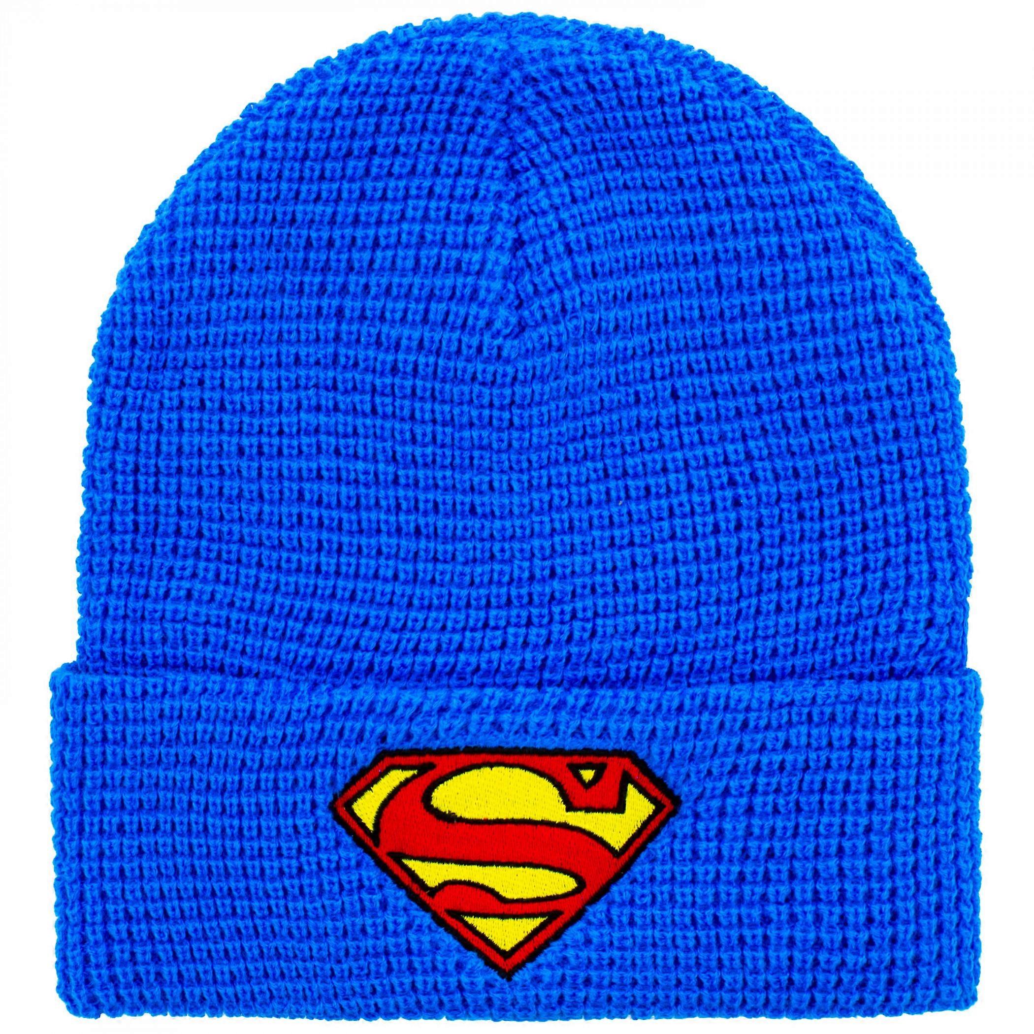 Superman Embroidered Logo Waffle Knit Cuff Beanie