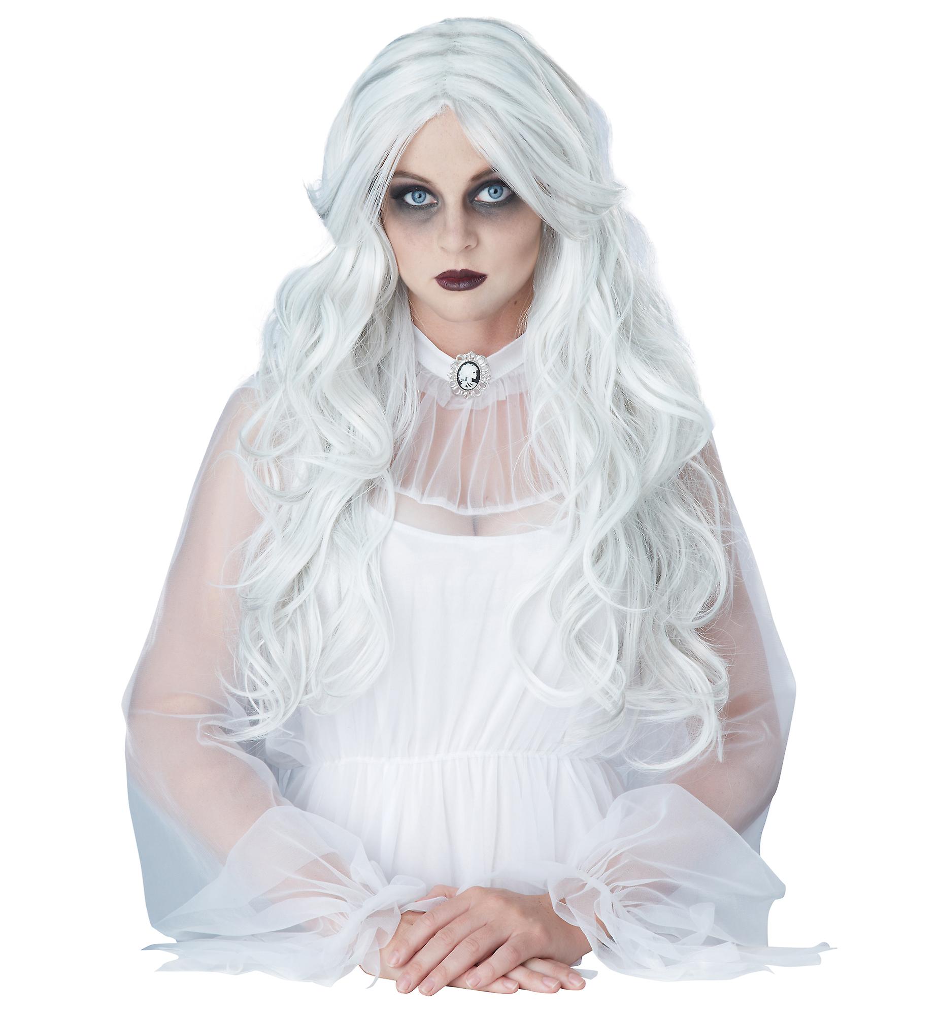 Supernatural Ghost Bride Spirit White Grey Witch Halloween Womens Costume Wig