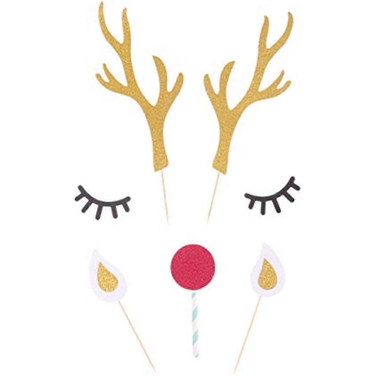 SUPVOX Antler Cake Toppers Reindeer Cake Decoration Glitter Christmas Cupcake Picks for Xmas Holiday Birthday Wedding Baby Shower Decor Party Supplies