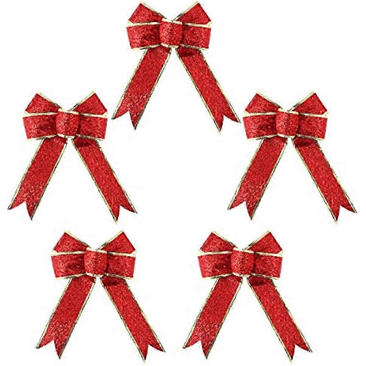 SUPVOX Large Christmas Tree Bows Glitter Glittering Fabric Gold Gift Ribbon Tree Decorations Presents Kids 5pcsPack (Red)