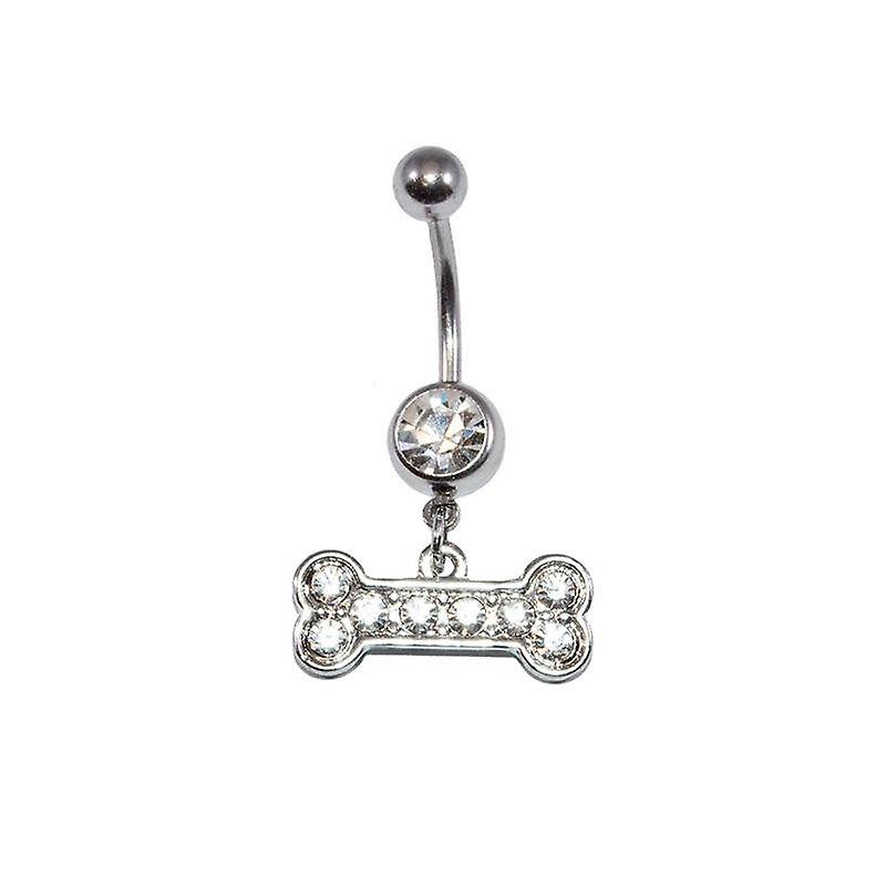 Surgical steel 14ga dog bone belly ring with cz gems