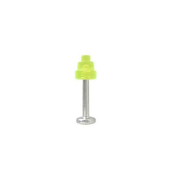 Surgical Steel Labret with Yellow UV Acrylic Bead Description This is a spectacular labret monroe lip piercing ring made with a 316L high-grade surgical steel shaft and an ultraviolet green acrylic replacement bead in step cone design. The comfortable flat end measures 4mm. The size is available in 18 gauge and length of 6mm-1/4 of an inch. The entire piece is nickel free. . You can return any product within 30 days from purchase date.