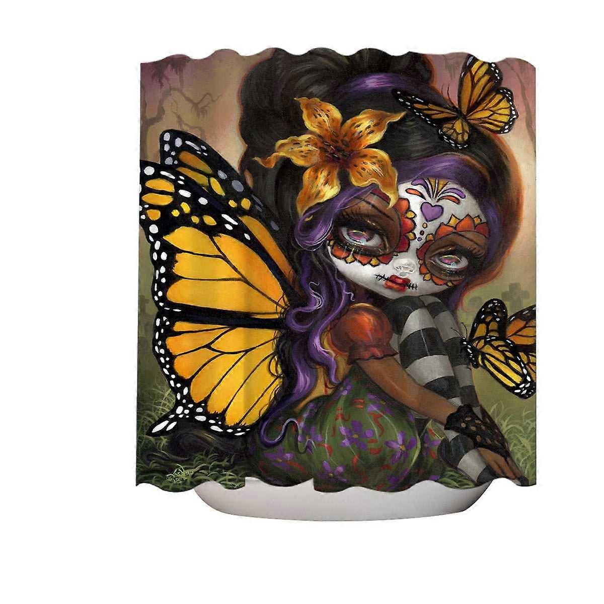 Sweet Isabella Day of the Dead Butterfly Girl Shower Curtain