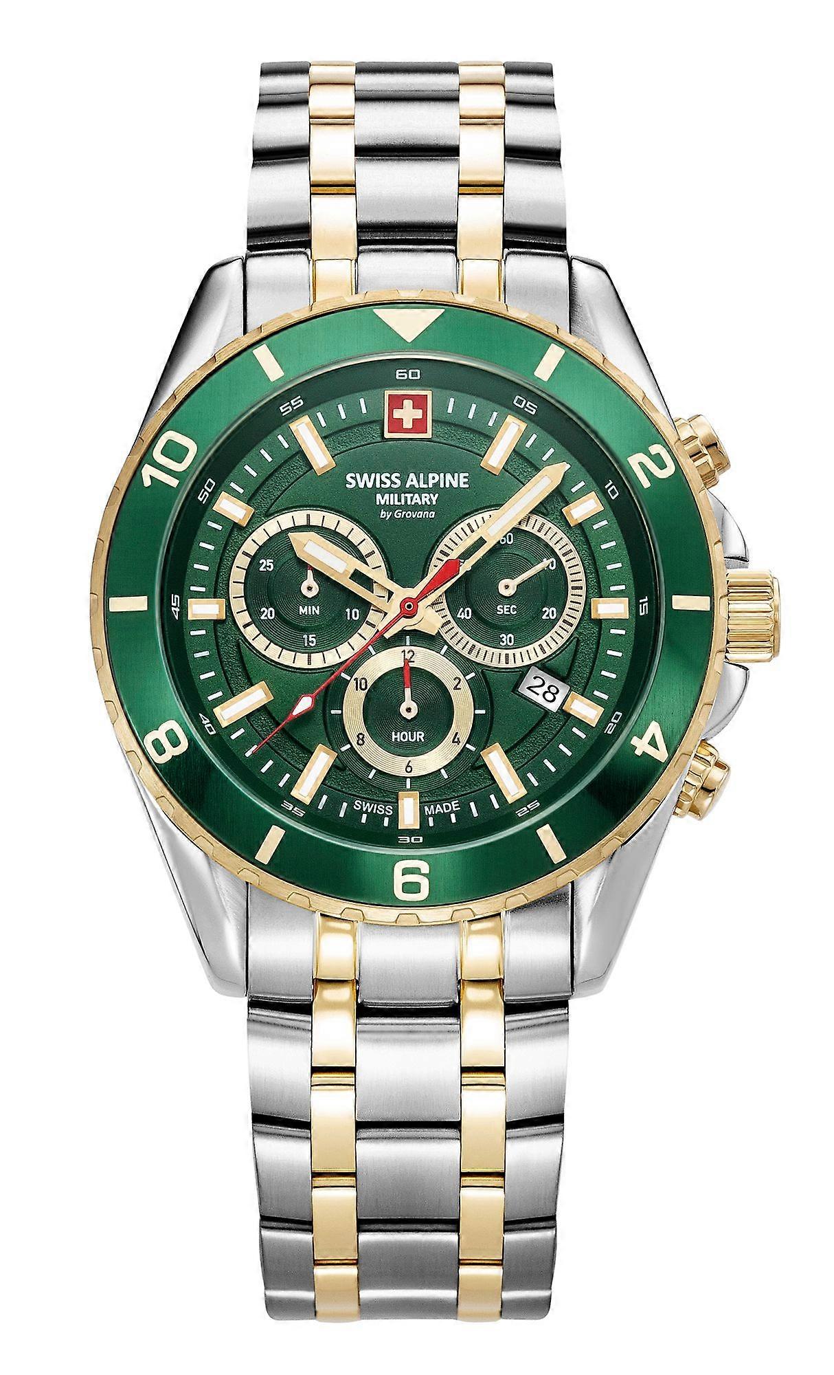 Swiss Alpine Military Herren Uhr Analog Quarz Chronograph 7034.9144SAM Edelstahl