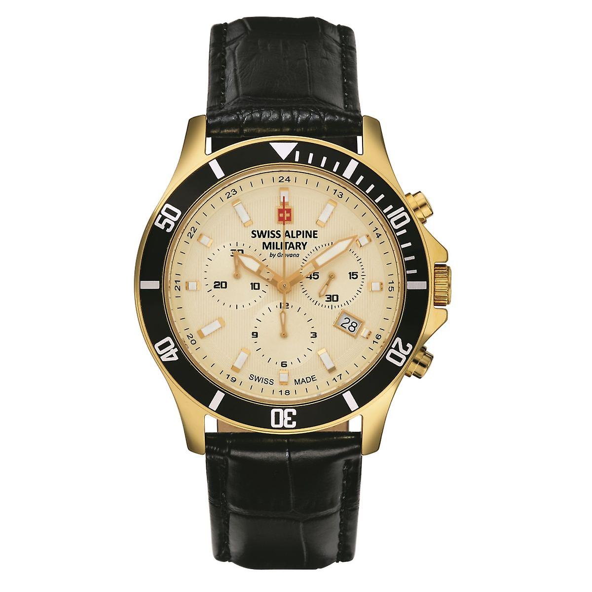 Swiss Alpine Military Herren Uhr Chronograph Analog Quarz 7022.9511SAM Leder