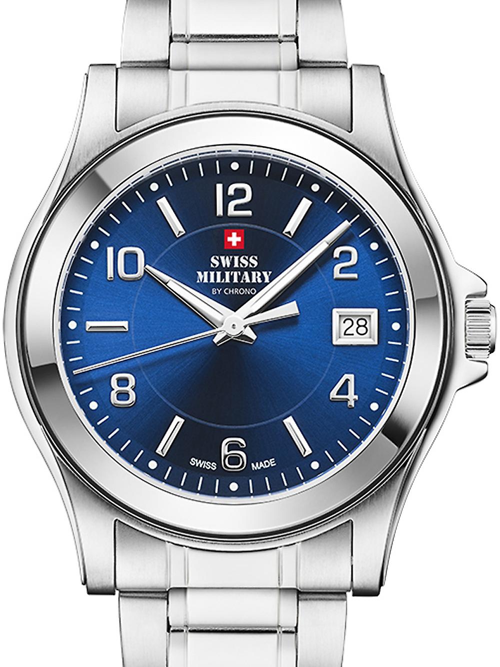 Marke: Swiss Military by Chrono • Hersteller-Nr.: SM34002.23 • Hersteller Serie: Herren 39mm • Funktionen: Datum, Minute, Sekunde, Stunde • Antrieb: Batterie (Quarz) • Zifferblatt Farbe: Blau • Anzeige: Analog • Wasserdichte: 5 ATM • Lünette: Feststehend • Oberfläche: Mattiert, Poliert • Gehäuse Farbe: Silber • Gehäuse Material: Edelstahl • Gehäusedicke: 9 mm • Gehäuse Form: Rund • Gehäusebreite: 39 mm • Gehäuseboden: Edelstahlboden, gepresst • Geschlecht: Herren • Glas: Mineralglas • Beleuchtung: Leuchtindexe, Leuchtzeiger • Stil: Klassisch • Armband Material: Edelstahl • Armband Farbe: Silber • Bandanstoßbreite: 20 mm • Schließe: Faltschließe • Max. Handgelenkumfang: 220 mm • EAN: 7630019155014 • Artikelgewicht: 0.10 kg ★★★ To our non EU customers: logistics will request local tax from you + a little service fee ★★★