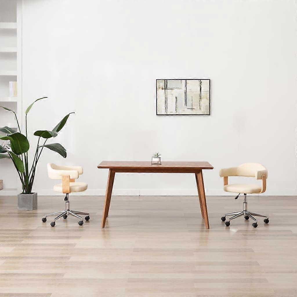 Drehbarer Bürostuhl Creme Bugholz und Kunstleder